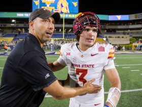 69 – Combined ages of Arizona State head coach Kenny Dillingham (34) and Texas State’s G.J. Kinne (35). Dillingham’s team won the game 31-28.