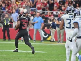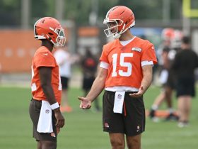 But the most touching moment came toward the end, when Uecker’s family gathered at the mound for a ceremonial first pitch from Bob Uecker Jr. to Robin Yount and the entire Brewers team – all sporting special one-day-only jerseys emblazoned with ‘Ueck’ in place of their names – went out to shake hands, exchange hugs and provide support.