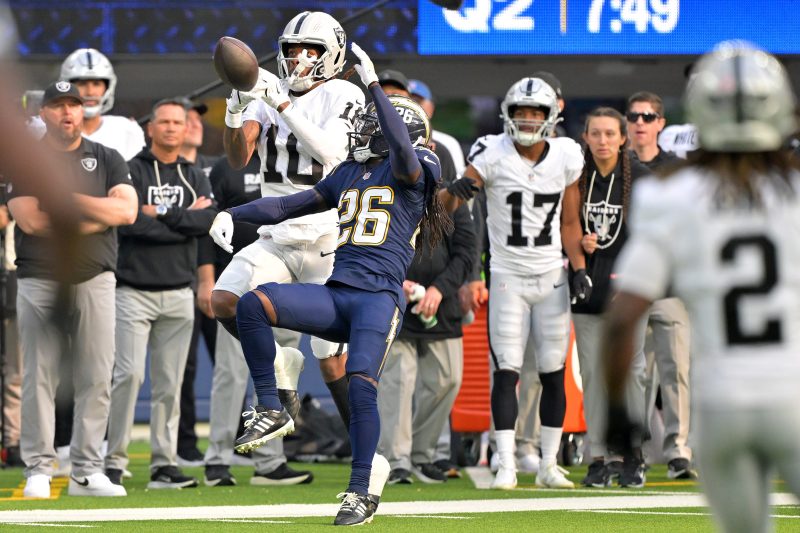 Vegas’ quarterback lofted a ball down the sideline for Dont’e Thornton Jr., who was, fittingly, being defended by Donte Jackson.