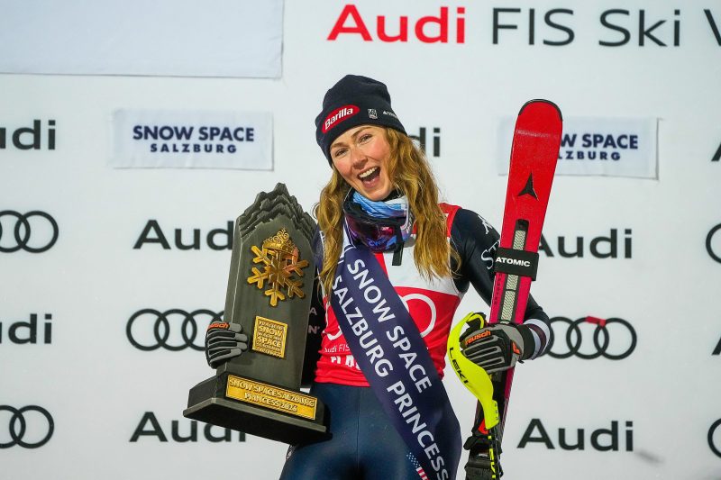 Shiffrin beat out teammate Paula Moltzan to win the night race in Flachau, Austria, on Tuesday, Jan. 13, finishing 0.41 seconds ahead with a time of 1:50.52. It was the sixth slalom win of this World Cup season for Shiffrin — she’s won all but one of the slalom races — and extended her lead in the overall standings to 170 points with one slalom race left before the Milano Cortina Olympics.