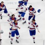 Jack Hughes clinching the gold medal for Team USA men’s ice hockey with an overtime goal against Canada.