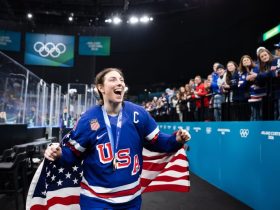 The U.S. men’s hockey team paid homage to him throughout the tournament, hanging his jersey in their locker room. Gaudreau’s family members were also in attendance for Sunday’s gold medal game, and when Jack Hughes scored the golden goal in overtime, the Americans wasted no time parading Gaudreau’s jersey around the ice, honoring him as part of the championship team. — Jon Hoefling