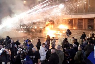 Thousands of anti-government protesters violently faced off against riot police outside ...