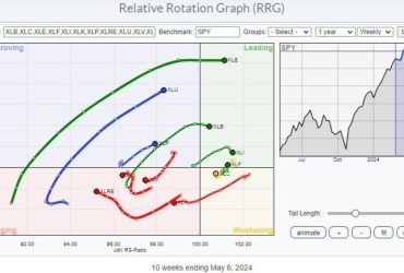 The Relative Rotation Graph for US sectors shows long tails for ...