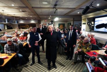 President Donald Trump paused during a restaurant stop in Iowa after ...