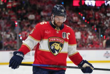 Panthers captain Aleksander Barkov had to be helped off the ice ...